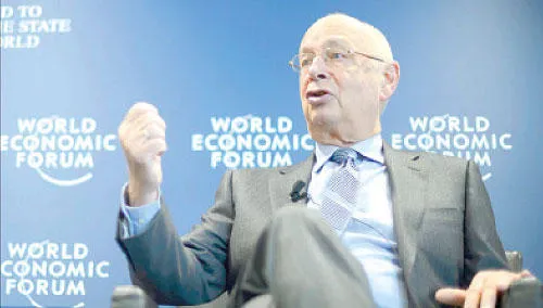 الرئيس المؤسس للمنتدى الاقتصادي العالمي كلوس شواب متحدثا في مؤتمر صحافي أمس (إ.ب.أ)