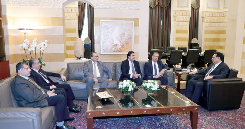 رئيس الحكومة حسان دياب مجتمعاً مع رئيس وأعضاء نقابة الصيارفة أمس (دالاتي ونهرا)