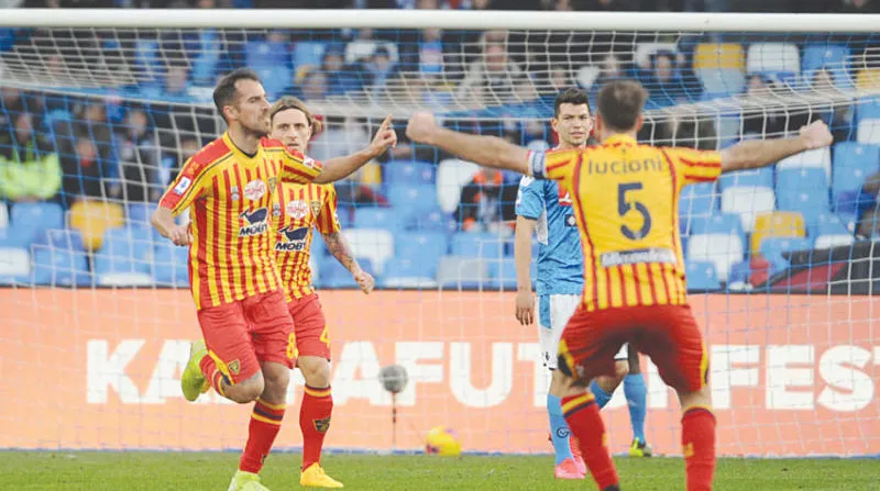 لاعبو ليتشي يحتفلون بانتصارهم على نابولي (إ.ب.أ)