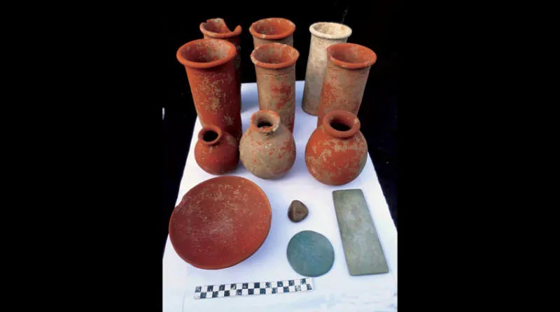 مجموعة من الأواني الفخارية المكتشفة
