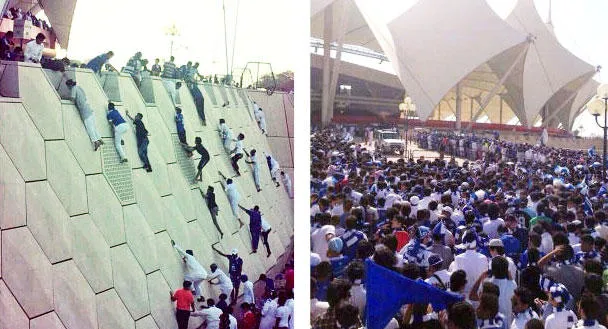 وبدت بعض الصور التي تناقلتها مواقع التواصل الإعلامي محزنة لبعض الجماهير التي اضطرت إلى مخالفة الأنظمة، بمنعها من الدخول عبر بعض البوابات، لتتسلق نحو 5 إلى 7 أمتار، مما شكّل خطرا كبيرا على سلامتهم، خاصة أن غالبية هؤلاء المشجعين من صغار السن.