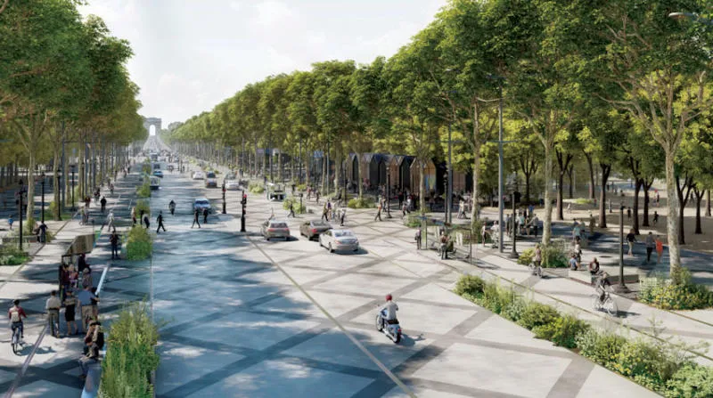 من المشاريع المقترحة واحد تقدمت به وكالة «بي سي آ ستريم» للهندسة. ونشرت الوكالة، الأسبوع الماضي، فيلماً قصيراً يعرض الصورة التي سيكون عليها الشارع بعد اكتمال أعمال التأهيل. كما جرى افتتاح معرض في صالة «الآرسنال» بعنوان «تاريخ وتوقعات»، يتضمن الخرائط والصور والشكل النهائي الذي سيبدو عليه «الشانزليزيه» بعد 10 سنوات. وفي حال اكتملت الموافقات على المشروع فإن من المتوقع أن تظهر بوادر الملامح الجمالية الجديدة للعيان خلال 5 سنوات من الآن. ويركز المخطط على طرد زحمة السيارات الخاصة والحافلات السياحية لصالح توسيع الحدائق والمساحات الخضراء وإضافة ممرات للتمشي ومتنزهات وملاعب للأطفال وحمامات عمومية حديثة ذاتية التنظيف. كما سيجري تعبيد الشارع وفرش الممرات بمواد «صامتة»، أي تمتص أصوات الاحتكاك. وبهذا تراهن البلدية على استعادة الباريسيين إلى «الشانزليزيه» حين يجدون فيه أماكن رائقة لتناول القهوة بسعر لا يثقل على جيوبهم. ويقود المشروع كله هاجس الحفاظ على بيئة طبيعية ونظيفة.