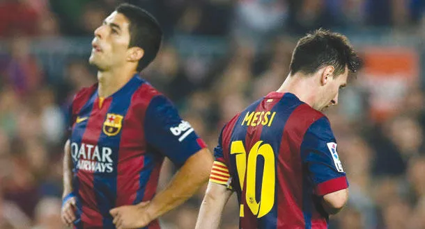 علامات الأسى بادية على ميسي وسواريز نجمي برشلونة بعد الخسارة أمام سيلتا فيغو (رويترز)