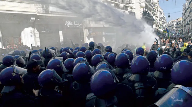 ولم تظهر في الساعات الأولى للصباح، عندما بدأ المتظاهرون يتجمعون، أي مؤشرات تفيد بأن قوات الأمن المنتشرة على أرصفة الطرقات تعتزم التصدي للمحتجين. لكن عندما تعاظم عددهم، وبدأوا يسيرون على طول شارع «ديدوش مراد»، متجهين إلى قصر الرئاسة، الذي يبعد بنحو كيلومترين، تغير تصرف رجال الأمن فاستعملوا خراطيم المياه ضدهم، و«القنابل الصوتية»، التي أحدثت طنينا حادا، دفع بالعديد من الأشخاص إلى مغادرة المكان. وهذه هي المرة الثانية منذ بداية الحراك التي تستعمل فيها السلطات هذا «السلاح» ضد المتظاهرين.