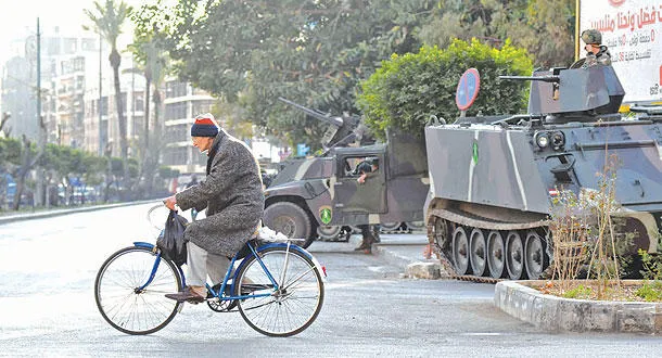 لبناني على ظهر دراجته يمر بنقطة تفتيش أقامها الجيش عند المدخل الشمالي لمدينة طرابلس أمس (أ.ف.ب)