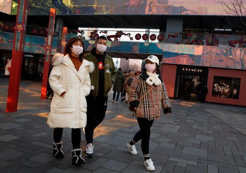 أشخاص يرتدون كمامات في بكين (رويترز)
