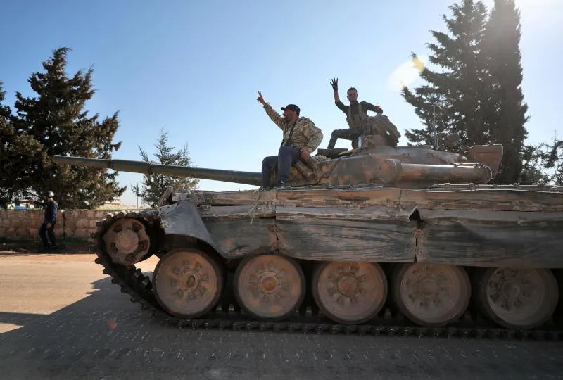 مسلحون سوريون موالون لتركيا في مدينة سراقب السورية (أ.ف.ب)