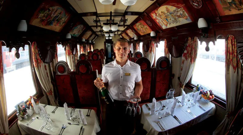 فضلاً عن أن القطار الذي ينقل المسافرين عبر محطات رحلة «الحكاية الشتوية»، يبدو بحد ذاته بمثابة «حكاية قيصرية»، إذ تم تصميم عربات الخدمات الرئيسية فيه، مثل المطعم، بأسلوب تصميم قصور القياصرة الروس، أما القمرات في عرباته، فتبدو أقرب إلى غرف جميلة «حنونة» في فنادق فاخرة.