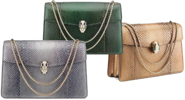 إذا كنت تريدين حقيبة يد ترافقك نهارا ومساء، وتضفي عليك أناقة راقية، فعليك بحقيبة «سربنتي فوريفر» (Serpenti Forever) من دار المجوهرات الإيطالية العريقة «بولغاري». وهي حقيبة تأتي ضمن مجموعة محدودة تم تطويرها بشكلٍ حصري لمحلات «هارفي نيكلز» بدبي، وطرحها في منتصف شهر أكتوبر (تشرين الأول) الماضي. وهي تتوافر ضمن ثلاثة ألوان حصرية، الفضي والذهبي والأخضر الزمردي، لتعكس قيمتها كقطعة مجوهرات.