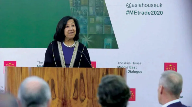 وألقت الكلمة الرئيسية للمؤتمر لبنى العليان، رئيس مجلس إدارة البنك السعودي البريطاني (ساب). وضمت قائمة المتحدثين كلاً من سيمون بيني، مفوض التجارة البريطاني في الشرق الأوسط، وديفيد ديو، العضو المنتدب لدى بنك ساب، وفيكتور غاو، نائب رئيس مركز الصين والعولمة. وقد تم تنظيم المؤتمر من قبل شركة آسيا هاوس، المركز المتخصص بالخبرات في مجال التجارة والاستثمار في آسيا ومقره لندن.