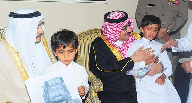 وزير الداخلية السعودي الأمير محمد بن نايف وأمير منطقة القصيم الأمير فيصل بن بندر يقدمان واجب العزاء في وفاة رجل أمن قتل خلال المواجهات مع الارهابيين، أمس (تصوير: عبد الله الفهيدي)