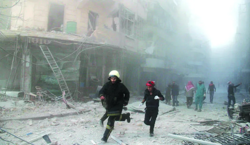 آثار الدمار والحرائق في منطقة المواصلات بحلب التي قصفت من قبل طيران النظام أمس (أ.ف.ب)