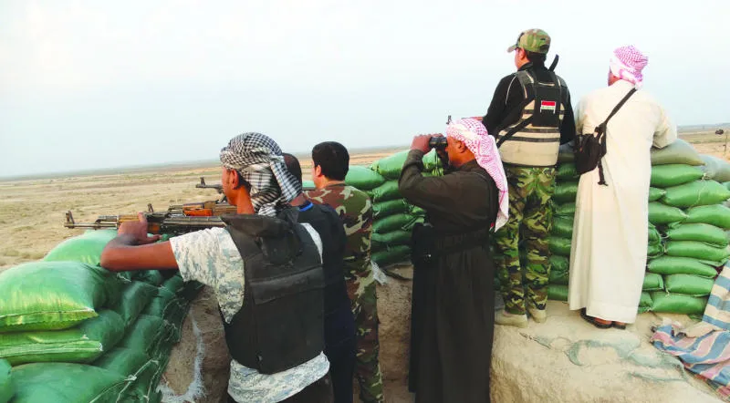 مقاتلون من عشائر الأنبار يتخذون موقعا للدفاع عن عامرية الفلوجة ضد تنظيم داعش (رويترز)