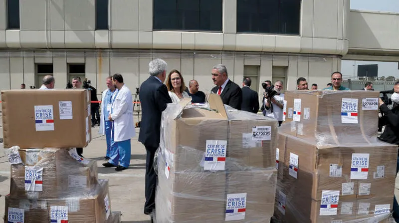 الوزير حتي تسلم معدات الحماية الطبية من السلطات الفرنسية للبنان في مطار رفيق الحريري الدولي أمس (إ.ب.أ)