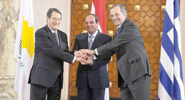أعلن قادة كل من مصر واليونان وقبرص أمس عن تشكيل جبهة ثلاثية لمكافحة الإرهاب والتطرف في المنطقة، إضافة إلى تعزيز العلاقات المشتركة على المستويين الثنائي والثلاثي، وهو ما يراه محللون مصريون خطوة في مجال تفعيل مزيد من الشراكة المصرية الأوروبية في كل المجالات، وخصوصا في المجال الأمني، إضافة إلى ما قد يحمله من رسالة ضمنية للجانب التركي لتعديل سياساته مع دول المنطقة، رغم تأكيد قادة الدول الثلاث أن القمة «ليست موجهة ضد أحد».