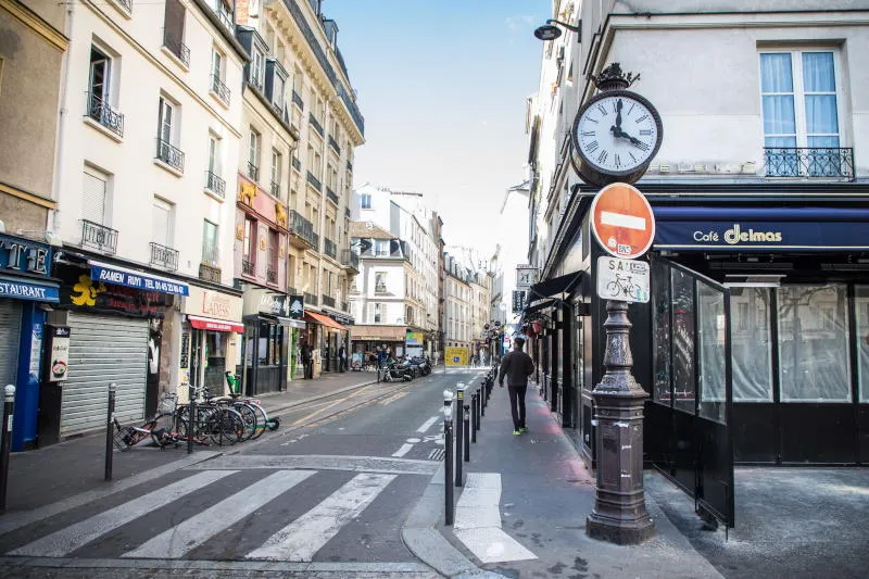 رجل يسير في شوارع باريس الخالية بسبب كورونا (أ.ب.إ)