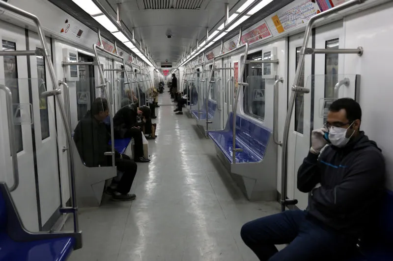إيرانيون يرتدون أقنعة الوقاية في عربة مترو الأنفاق بطهران (رويترز)