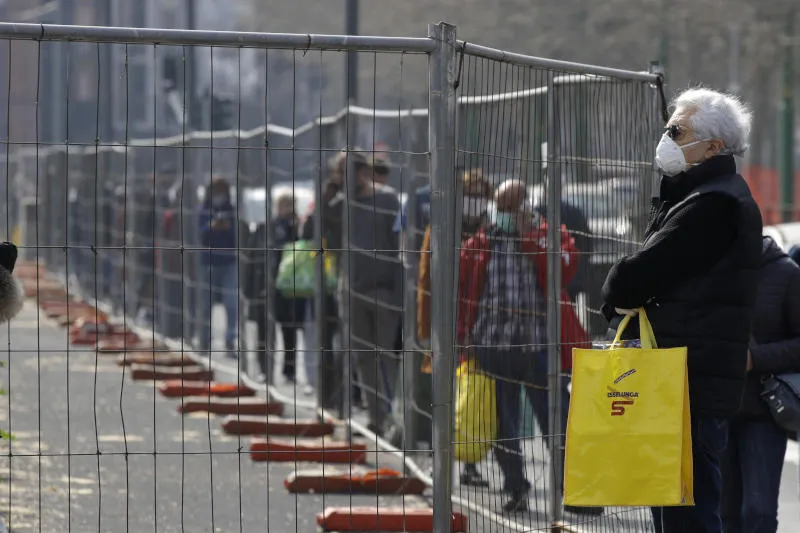 ينتظرون أدوارهم لدخول سوبرماركت في ميلانو (أ.ب)