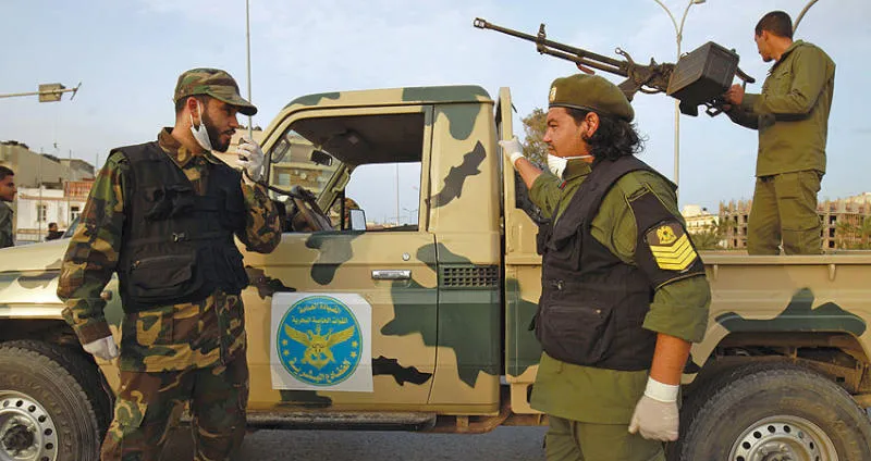 قوات تابعة لقائد الجيش الوطني الليبي خليفة حفتر في أحد شوارع مدينة بنغازي (أ.ف.ب)