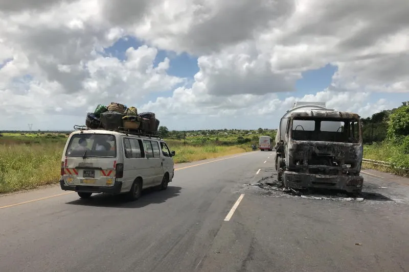 شاحنة أُضرم فيها النار على طريق سريع في موزمبيق (إ.ب.أ)