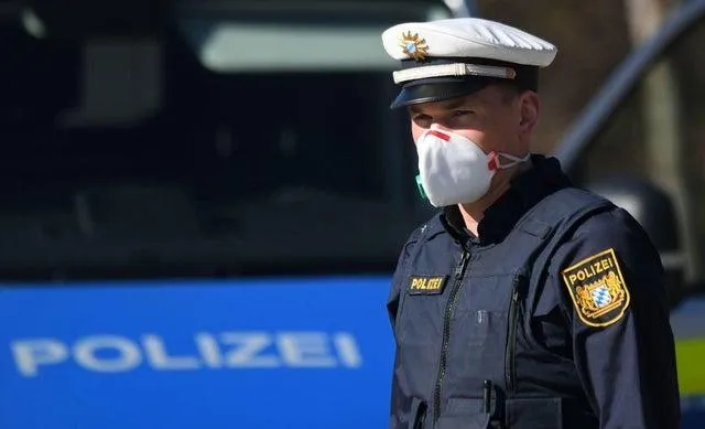 رجل شرطة يرتدي كمامة في ألمانيا (أ.ف.ب)