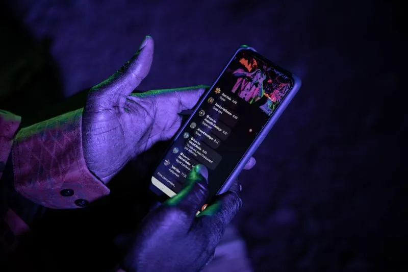 مستخدم يحمل هاتفه بينما يتابع نقلاً مباشراً على موقع فيسبوك (أ.ف.ب)