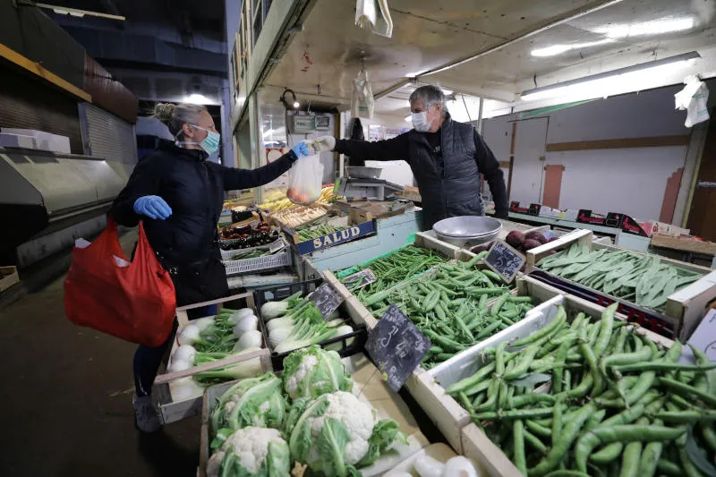 امرأة تبتاع خضاراً في أحد متاجر نيس في جنوب فرنسا (رويترز)