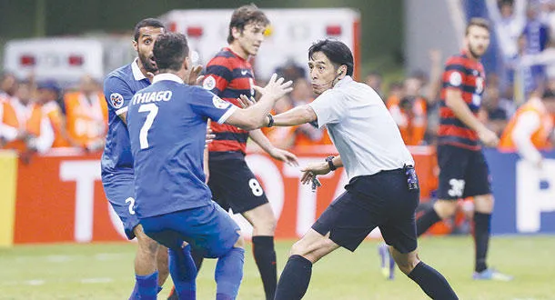 قرارات الحكم الياباني نيشيمورا في نهائي دوري آسيا أثارت الشكوك حول وجود مراهنات على المباراة (تصوير: عيسى الدبيسي)