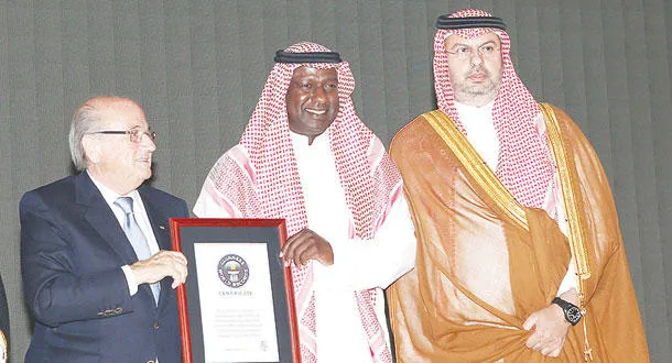 وقدم الأمير عبد الله بن مساعد وبلاتر شهادة موسوعة «غينيس ريكوردز» للأرقام القياسية لنجم كرة القدم السعودي الدولي السابق ماجد عبد الله.