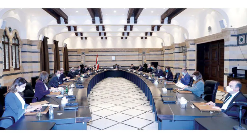 الحكومة اللبنانية مجتمعة أمس برئاسة الرئيس حسان دياب (دالاتي ونهرا)