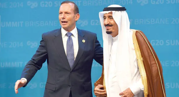 ولي العهد السعودي الأمير سلمان بن عبدالعزيز مع رئيس وزراء استراليا توني أبوت (أ.ف.ب)