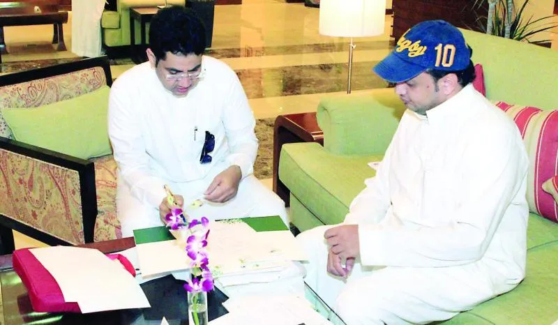 الزميلان رجا الله السلمي رئيس اللجنة الإعلامية وعلي الزهراني يتواجدان بشكل دائم في المركز