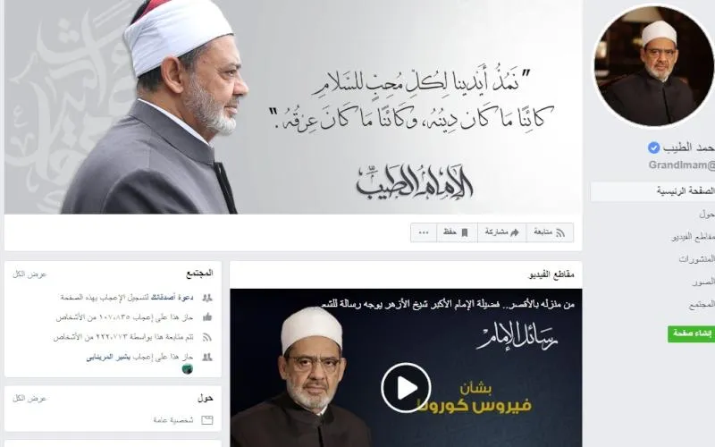https://aawsat.com/home/article/2233576/%D9%85%D8%B5%D8%B1-%D8%B1%D8%B3%D8%A7%D8%A6%D9%84-%C2%AB%D9%81%D9%8A%D8%B3%D8%A8%D9%88%D9%83%D9%8A%D8%A9%C2%BB-%D9%84%D8%B4%D9%8A%D8%AE-%D8%A7%D9%84%D8%A3%D8%B2%D9%87%D8%B1-%D9%88%D8%A8%D8%A7%D8%A8%D8%A7-%D8%A7%D9%84%D8%A3%D9%82%D8%A8%D8%A7%D8%B7-%D9%84%D9%85%D9%88%D8%A7%D8%AC%D9%87%D8%A9-%C2%AB%D9%83%D9%88%D8%B1%D9%88%D9%86%D8%A7%C2%BB