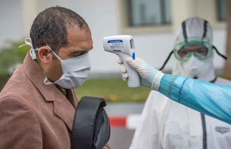 فحص حرارة مريض بمستشفى محمد الخامس العسكري بالرباط (أ.ف.ب)