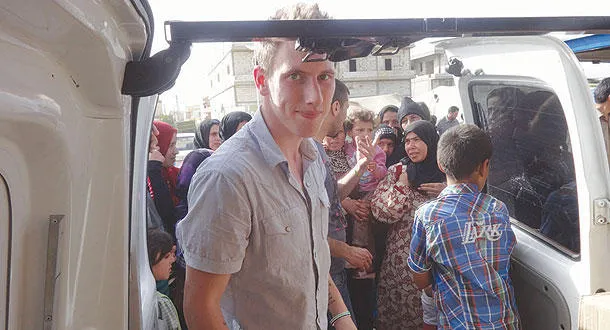 صورة نشرتها عائلة كاسيغ لعبد الرحمن يساعد في توصيل الإغاثة إلى سوريين داخل سوريا (أ.ب)