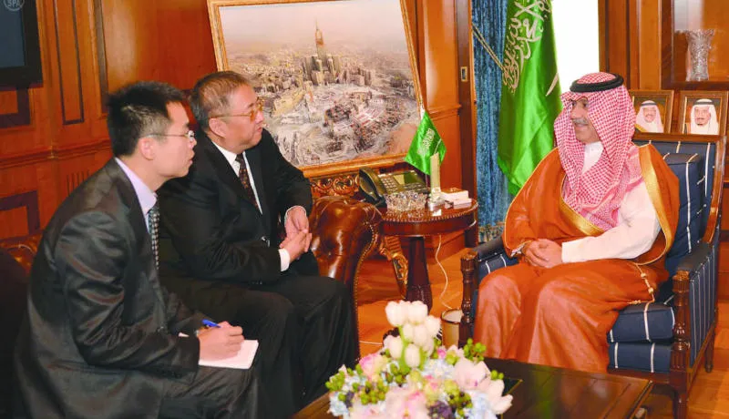 الأمير عبد العزيز بن عبد الله لدى استقباله المبعوث الصيني لقضية الشرق الأوسط (واس)