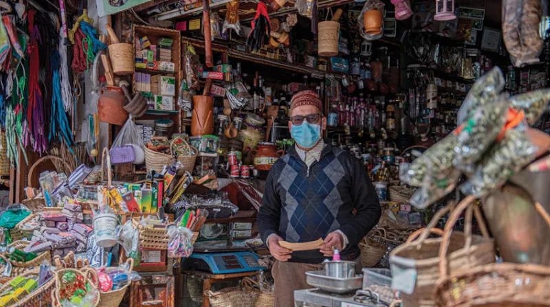 بائع مغربي داخل متجره في الرباط (إ.ب.أ)