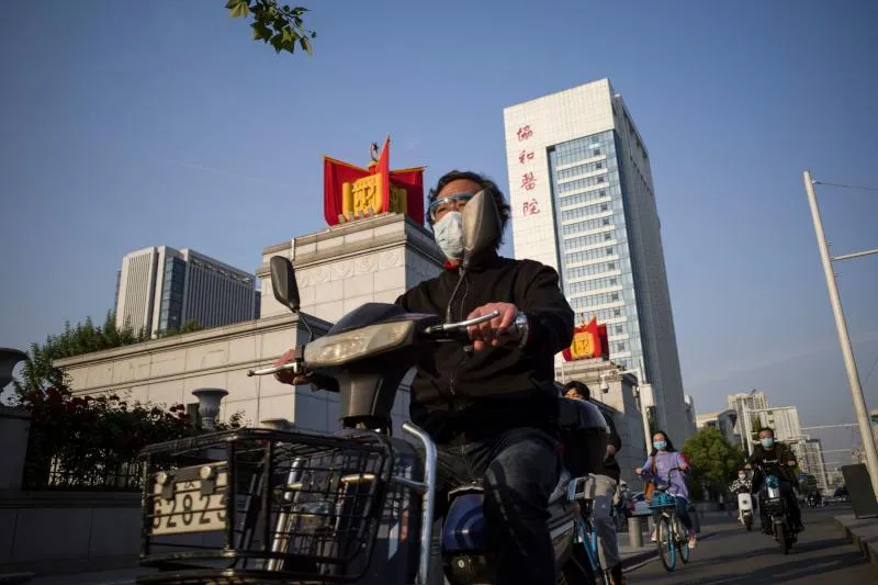 مواطنون على دراجاتهم في ووهان الصينية (أ.ف.ب)