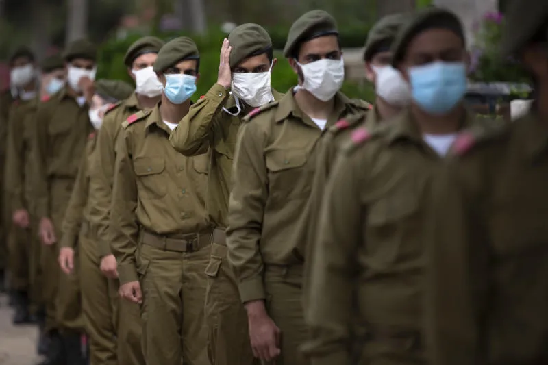 جنود إسرائيليون يرتدون أقنعة واقية (أ.ب)