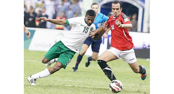 من مباراة الأخضر واليمن أول من أمس (تصوير: سعد العنزي)
