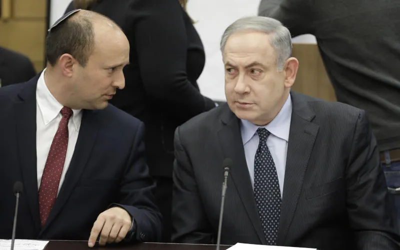 رئيس الوزراء الإسرائيلي بنيامين نتنياهو (يمين) ووزير الدفاع نفتالي بينيت خلال اجتماع بالكنيست (أرشيفية - أ.ب)