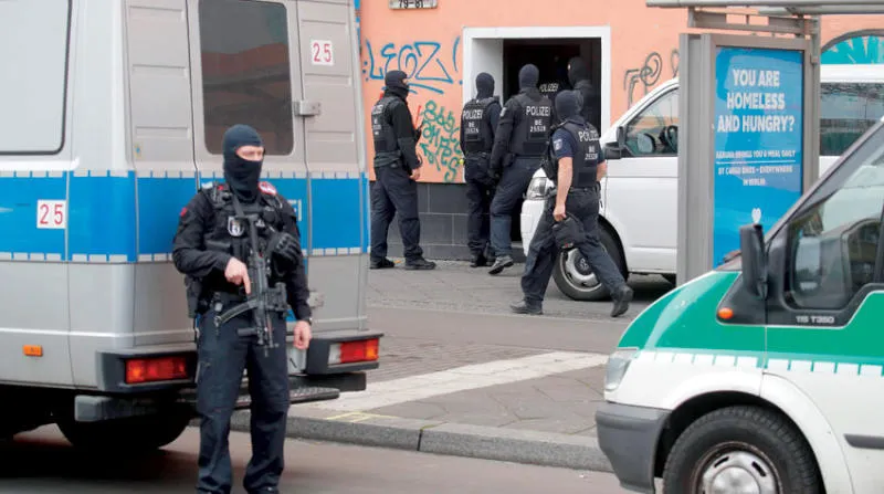 عناصر من الشرطة الألمانية خلال مداهمة جمعية الإرشاد التابعة لـ«حزب الله» (أ.ف.ب)