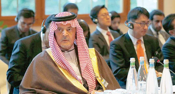 الأمير سعود الفيصل وزير الخارجية السعودي خلال جلسات مؤتمر السلام السوري بمونترو في سويسرا أمس (رويترز)