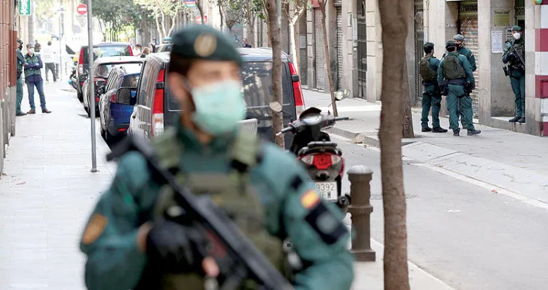 استنفار أمني لشرطة مكافحة الإرهاب الإسبانية في برشلونة عقب مداهمات واعتقال لمن وُصف بأنه «داعشي شديد التطرّف» أمس (إ.ب.أ)