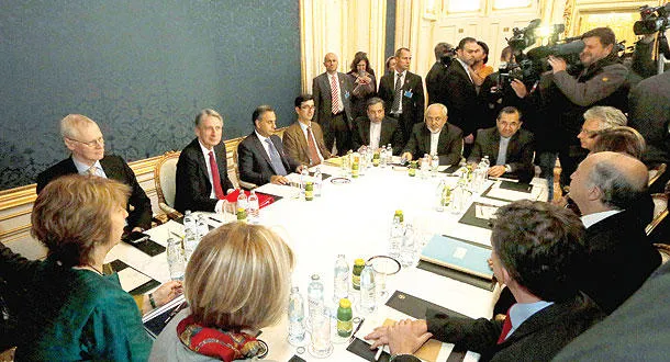 وكانت الولايات المتحدة وبريطانيا وفرنسا وألمانيا وروسيا والصين قد بدأت الجولة الأخيرة من المفاوضات مع إيران يوم الثلاثاء على أمل التوصل لتسوية للصراع المستمر منذ 10 سنوات والحد من المطامح النووية لإيران. وبعد أن كانت واشنطن تلعب الدور الأكبر في المفاوضات منذ تولي الرئيس الأميركي باراك أوباما الرئاسة عام 2009. عاد الدور الأوروبي للبروز خلال اليومين الماضيين. وأفادت مصادر أوروبية لـ«الشرق الأوسط» أن الجهود منصبة الآن لإقناع إيران بأن العرض المطروح من الدول الست يستأهل التجاوب. وكانت هذه الرسالة التي أوصلها الوزراء الأوروبيون وأشتون لظريف في لقاء لم يشمل كيري في فيينا، على أمل أن الضغوط والعلاقات الأوروبية تلعب دورا بناء. ولكن مسؤولين قريبين من المحادثات قالوا في منتصف الأسبوع إن الجانبين ما زالا في طريق مسدود بسبب الخلافات بشأن قضايا رئيسية وإنه من غير المحتمل أن يتوصلا لاتفاق شامل ويرون أن الأمر قد يتطلب تمديد المهلة.
