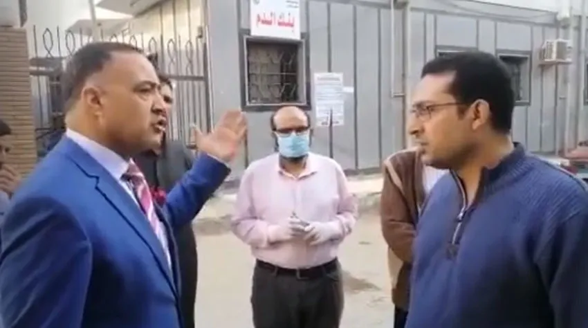 جانب من الفيديو الذي أثار أزمة بين النائب إلهامي عجينة (على يسار الصورة) والأطباء