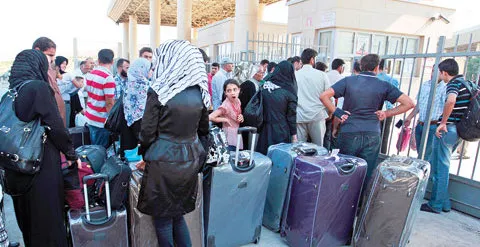 لاجئون سوريون يتجمعون عند معبر الحدود التركي سيلفيغوزو أمس (أ.ب)