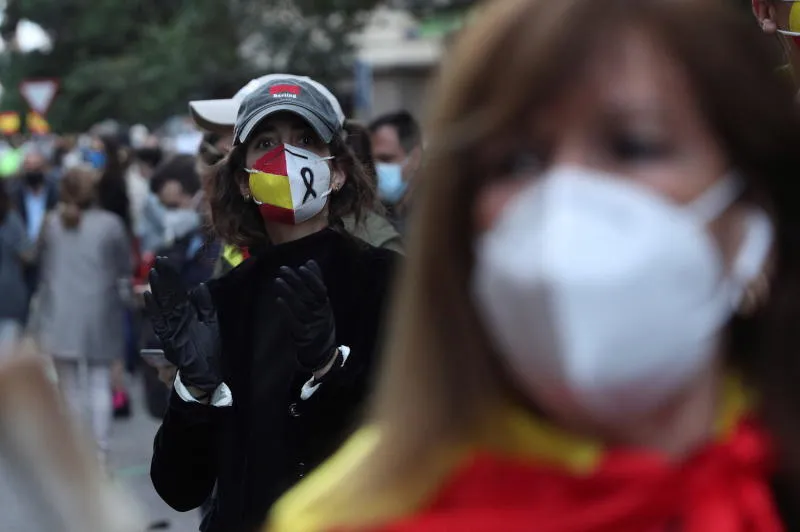 محتجون في إسبانيا ضد إجراءات العزل (أ.ب.أ)