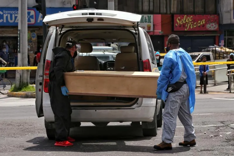 نقل جثة إحدى ضحايا «كورونا» في كيتو عاصمة الإكوادور (أ.ف.ب)