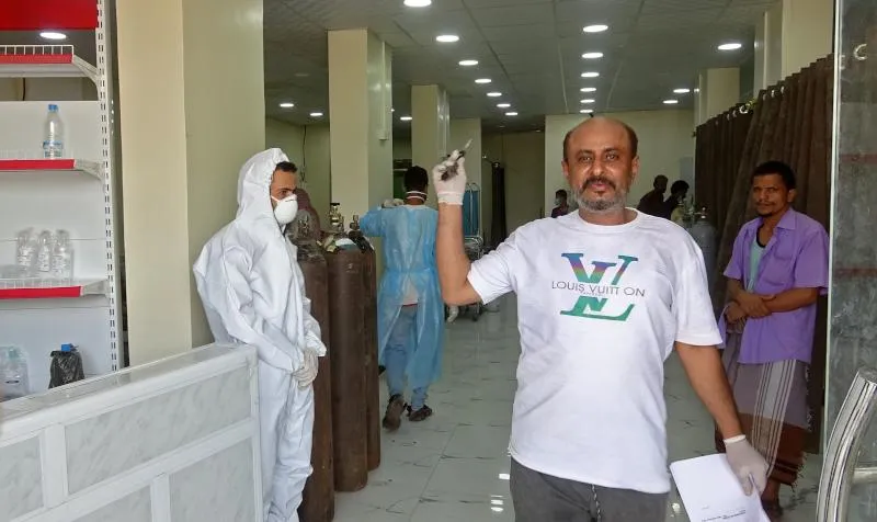 ممارسون صحيون يجرون اختبارات في أحد مستشفيات عدن (أ.ف.ب)